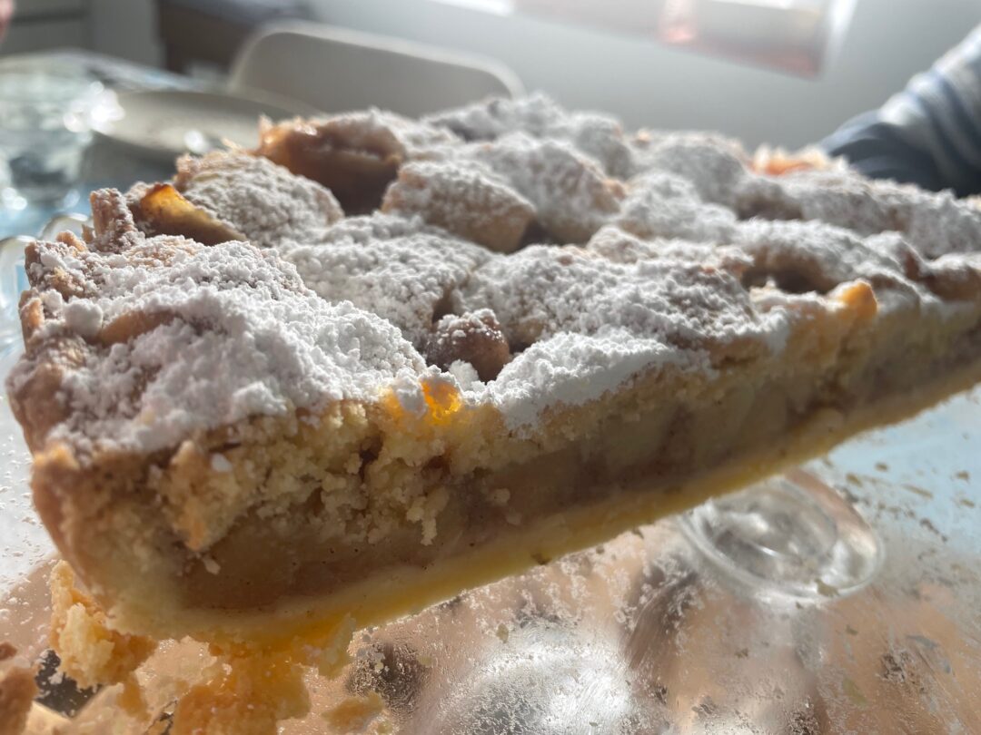 Eplucher et couper les goldens en gros dés. Disposer les dés dans le fond refroidi. Verser dessus le sirop de cannelle encore chaud, en le répartissant. Recouvrir la tarte avec les croisillons, en veillant à le centrer. Souder les bords